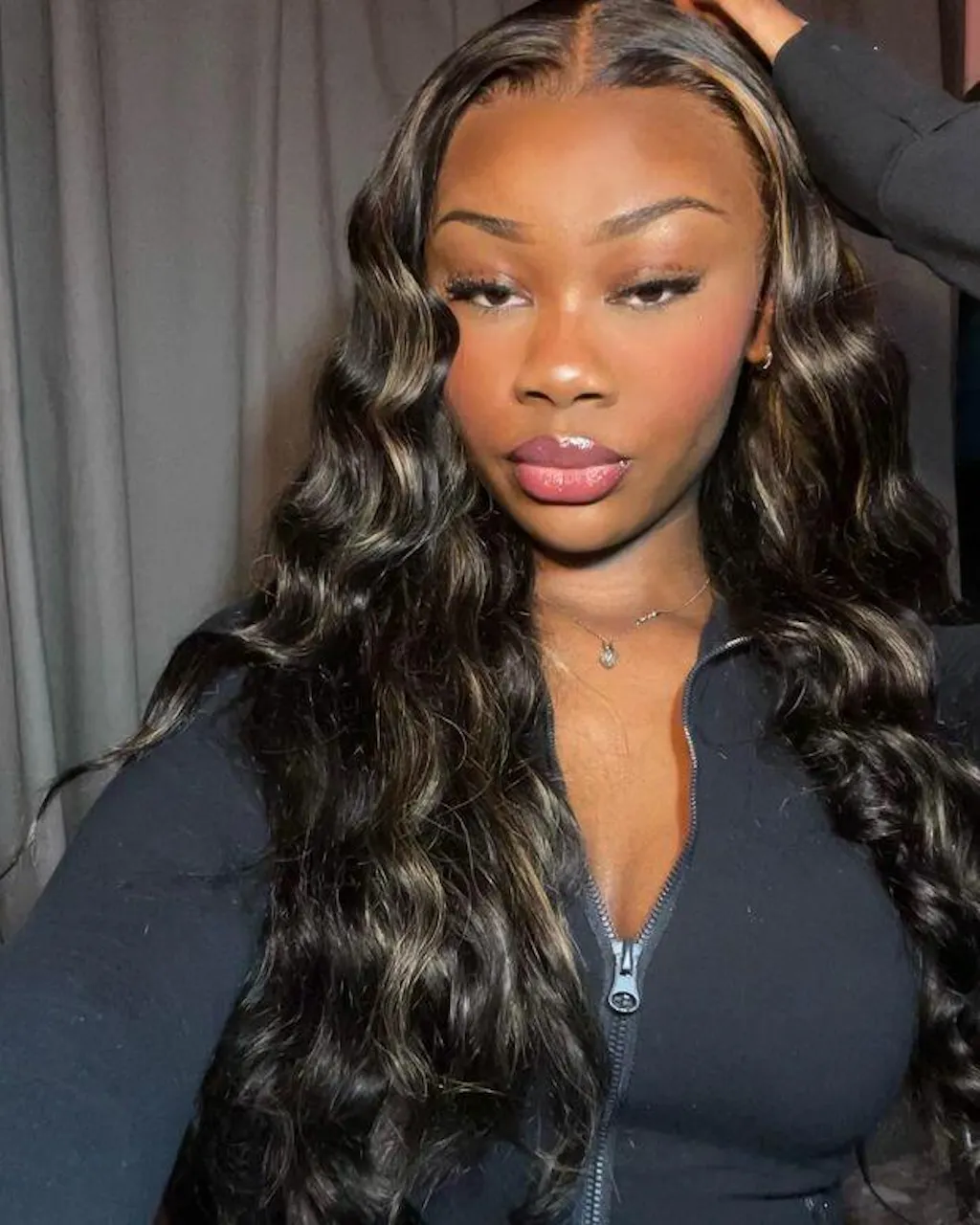 Poster Shows Model Wearing Gold Highlight Wig Collage of Gold Highlight Wig on Model and Mannequin Before and After Wearing Gold Highlight Wig on Woman The Handmade Technique of P27 Highlight Body Wave Wigs Gold Highlight Wig Craftsmanship Parting Options of Gold Highlight Wig Straight and Wavy Gold Highlight Wig Arabella Hair HD Lace VS Other Options Wig Cap with Non-slip Silicone And Elastic Bandage Features Black Hair Cap with Features Highlighted Steps to Install Gold Highlight Wig Gold Highlight Wig Suitable for Any Occasion Gold Highlight Wig Recommended by Fans Gold Highlight Wig Inspection Report